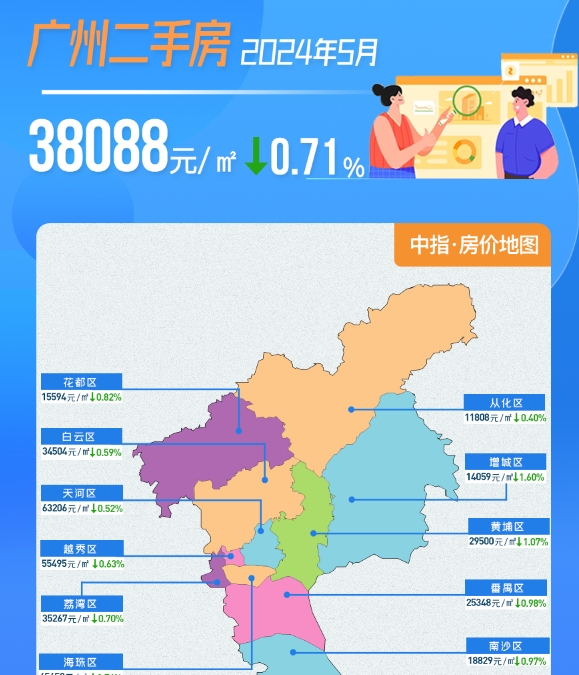 6月3日,中指研究院发布2024年5月广州房价地图。