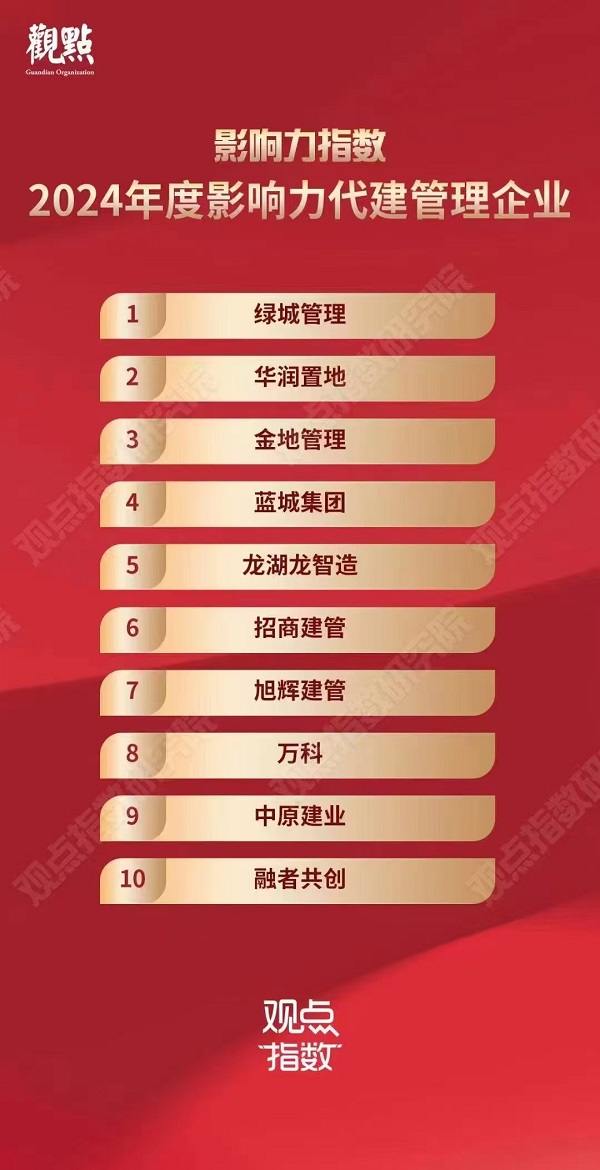 代建第一股持续引领行业发展 绿城管理荣获年度影响力TOP1
