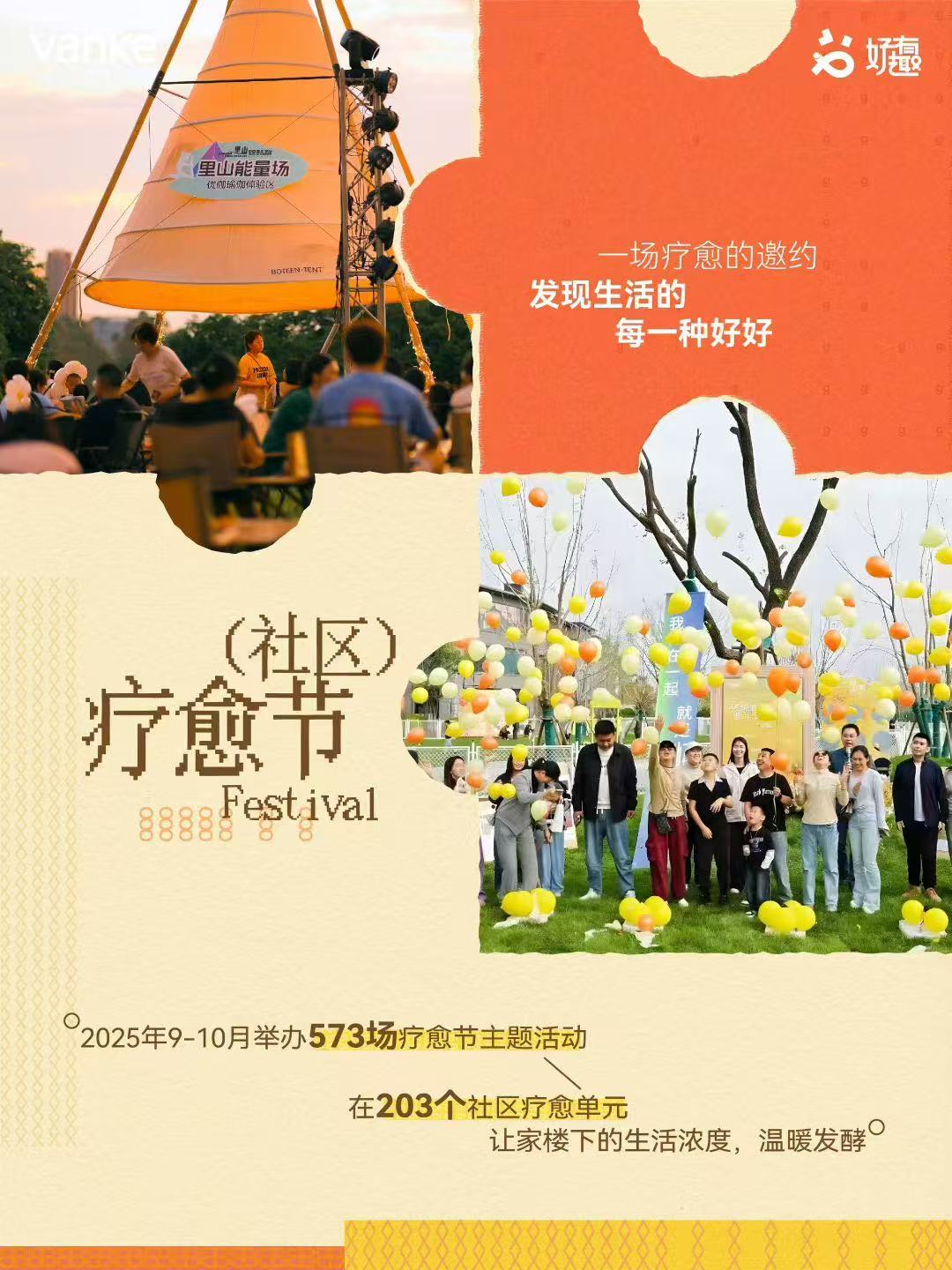 2025年9-10月,万科在203个社区单元集中举办了573场“社区疗愈节”主题活动,提升家楼下生活浓度,创造社区温暖记忆。