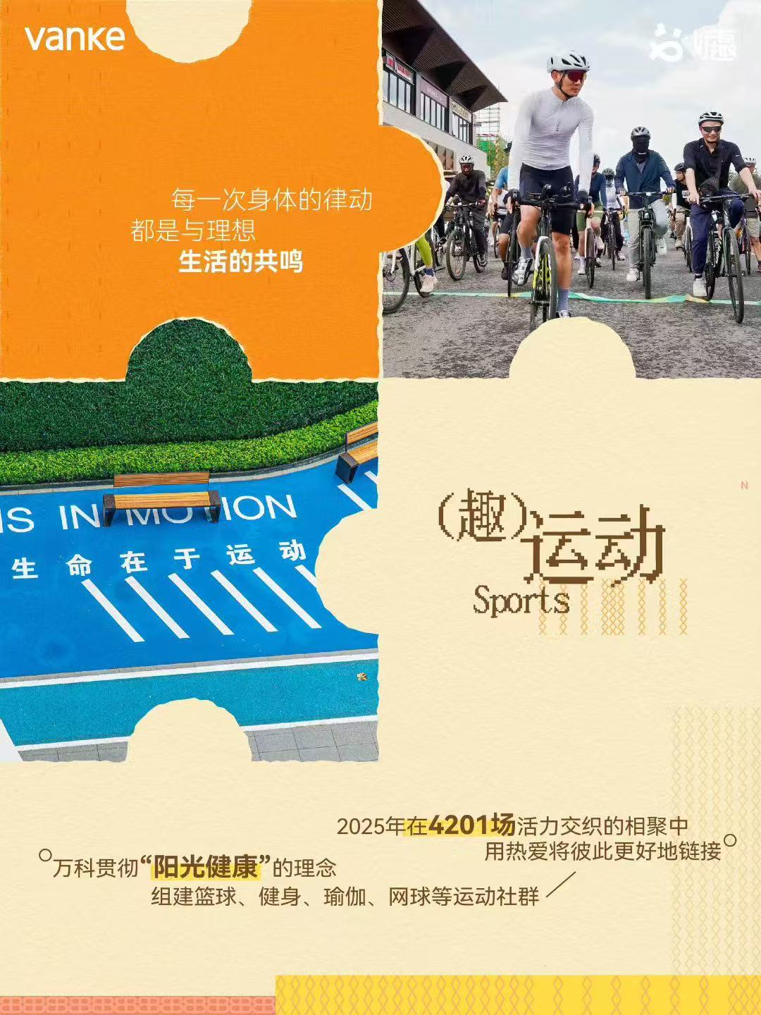 万科社群以“阳光健康”为理念,组建了篮球、健身、瑜伽、网球等运动社群。2025年共举办4201场运动主题相聚。