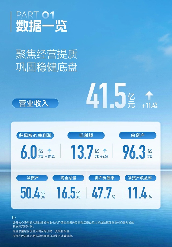 财报显示,2025年美的置业营业收入达41.5亿元,同比增长11.4%;归母核心净利润为6.0亿元,同比大幅增长19.3%。财务底盘保持健康稳健,总资产规模96.3亿元,现金总量充裕,资产负债率维持在47.7%的行业低位。公司持续回报股东,宣派末期股息每股0.19港元,并保持了稳定的派息政策。